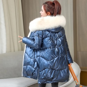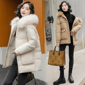2021冬季新品毛领棉衣女士宽松中长款加厚羽绒棉服...