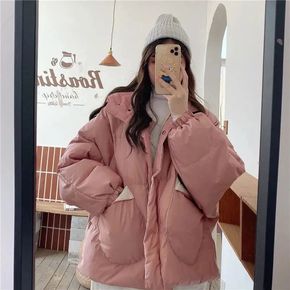 棉服女2021年冬装新款日系甜美温柔风粉色加厚连帽...