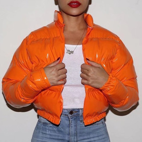 2021年秋冬欧美新款女装 棉服亮色金属短款女装棉...