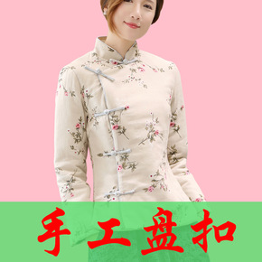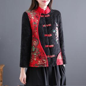 女冬季新款棉服轻薄短款棉袄复古民族风印花修身女式棉...