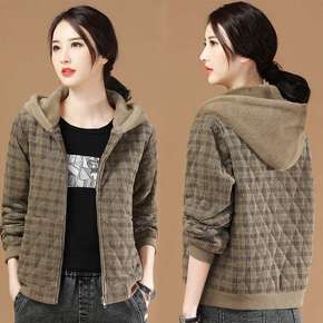 灯芯绒外套女2022年新款冬季韩版宽松加厚加棉格子...