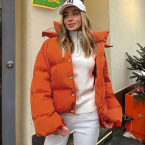 2022秋冬新款跨境女款休闲外套棉衣纯色欧美棉服面...