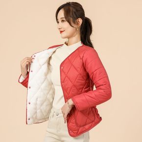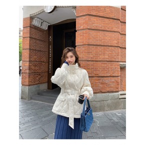 欧美女装批发2020秋冬季新款 立领按扣菱形夹克棉...