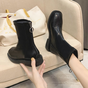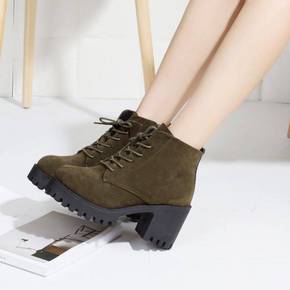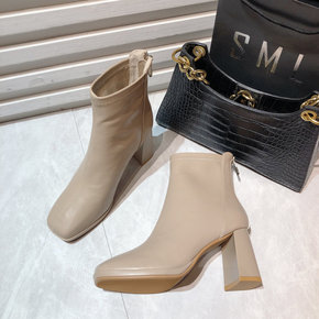 Cross border短靴女春秋英伦粗跟单里裸靴...