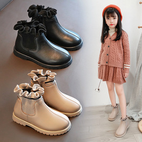 女童马丁靴公主短靴儿童靴子春秋单靴小女孩加绒棉靴二...