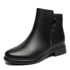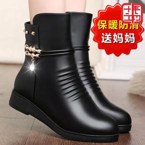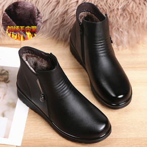 中年短靴女2021年新款秋冬季妈妈鞋子棉鞋真皮加绒...