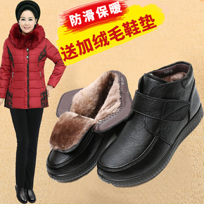 妈妈鞋冬季棉鞋加绒平底防滑保暖老人短靴中老年女鞋皮...