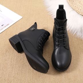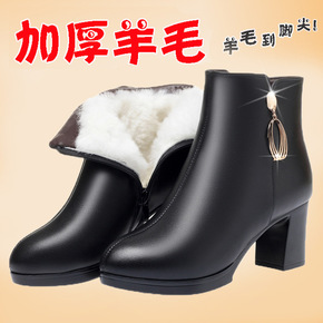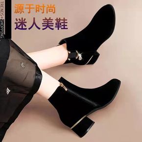妈妈鞋粗跟棉鞋女秋冬季流行新款中跟女鞋中年加绒短靴...
