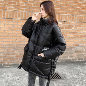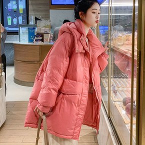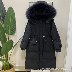 羽绒服女2021新款冬保暖白鸭绒外套女式中款大衣宽...
