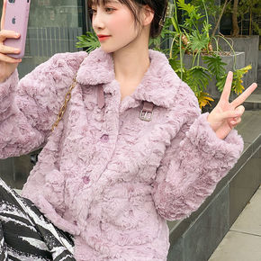 服2021新款冬大码棉服仿皮草外套加厚羊剪绒内胆女...