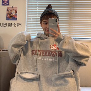 2021新款冬韩版港味连帽抽绳百宝袋字母卫衣女加绒...