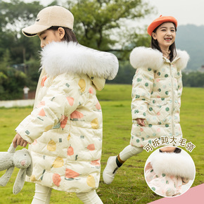 儿童羽绒服2022新款冬女童中长款韩版加厚白鸭绒亮...