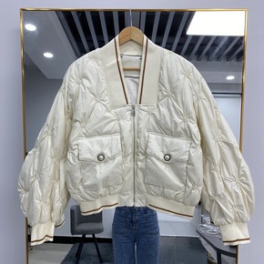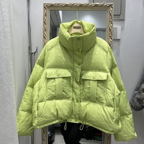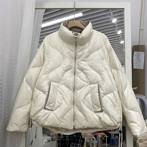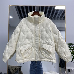 2022年新款反季羽绒服女短款立领轻薄白鸭绒面包服...