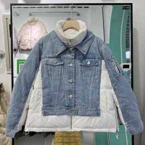 反季2022年新款时尚羽绒服女白鸭绒牛仔拼接白鸭绒...