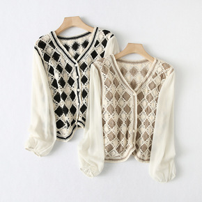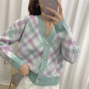 2021年秋装新款 日系小清新显瘦宽松针织绗线贴标...
