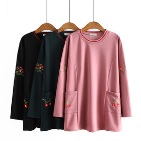 复古秋冬季新款宽松中长款口袋绣花加绒卫衣胖MM遮肚...