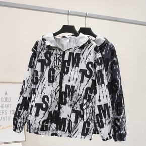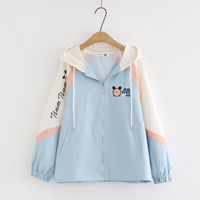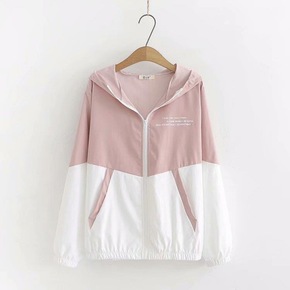2022年夏季新款 甜美学院风连帽字母印花薄款长袖...