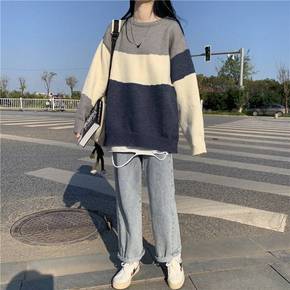 毛衣毛衣2021年新款女秋冬宽松套头慵懒风复古日系...