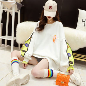 2021年秋季新款 韩版宽松胖MM大码中长款卡通印...