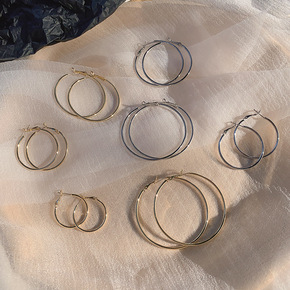S925银针欧美复古夸张大圆圈耳环女个性网红同款冷...