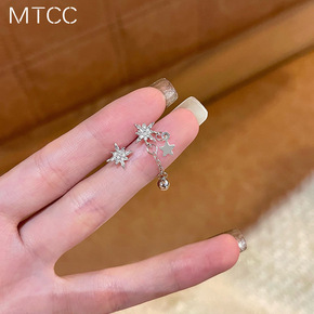 抖音素呎同款微镶锆石耳骨夹柳叶造型无耳洞可戴耳环耳...