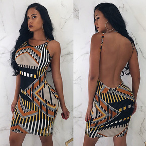 外贸欧美 亚马逊 春夏季女装无包臀印花连衣裙女装X...