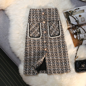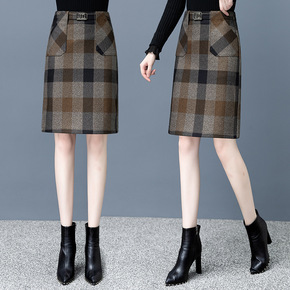 2021新款格子毛呢中长裙高腰显瘦千鸟格半身裙韩版...