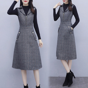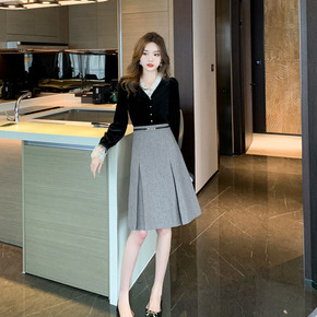 2021年秋冬显瘦套装针织打底荷叶边上衣大摆毛呢半...
