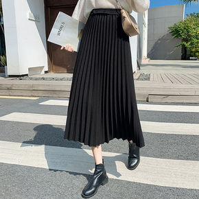 毛呢料百褶裙半身裙女秋冬新款学院风减龄高腰丝滑显瘦...