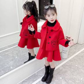 女童连衣裙秋2022新款宝宝毛呢儿童洋气外套小女孩...