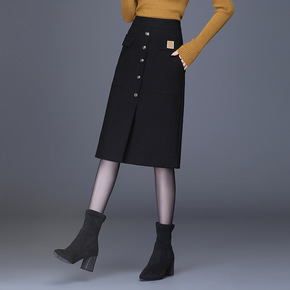 韩版高腰毛呢包臀裙大码半身裙女秋冬季中长款呢子一步...