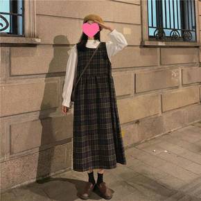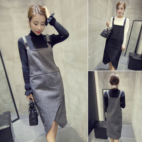 春季胖mm毛呢裙子女韩版学生款背带裙春夏毛呢原宿风...