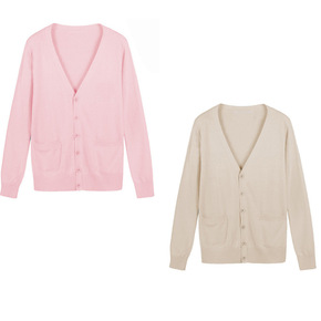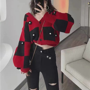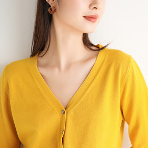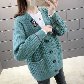 21秋季新款针织衫开衫女V领毛衣女系扣外套上衣外贸...