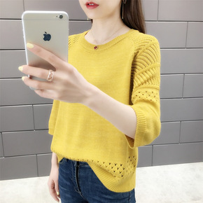 春装2021年新款女装针织衫镂空春季薄款女士毛衣打...