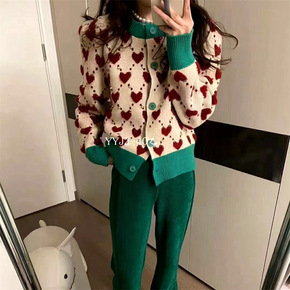 软糯樱桃针织开衫毛衣女秋冬宽松外穿复古日系慵懒设计...