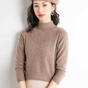 2021秋冬女式针织衫半高领毛衣女镂空勾花打底羊毛...