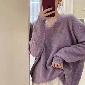 2022春季V领插肩长袖针织衫女韩版纯色宽松显瘦套...