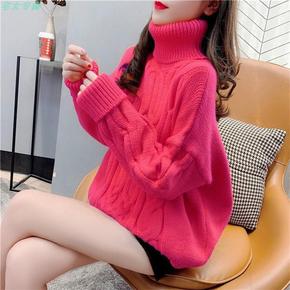 针织衫上衣女高领毛衣女2021年新款秋冬外穿复古麻...