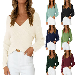 跨境OL通勤亚马逊新款2022秋冬针织衫圆领套头中...