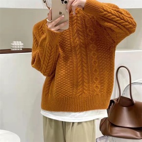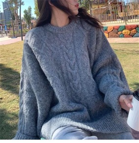 锦开 秋冬新款加厚麻花针织衫套头毛衣女外套宽松外穿...
