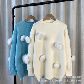 森系毛衣女装外套2021新款秋季手工毛球球套头加厚...