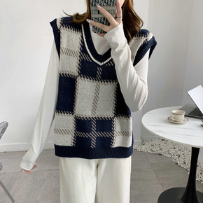 实拍韩版针织马甲女春秋毛衣背心2022新款无袖坎肩...