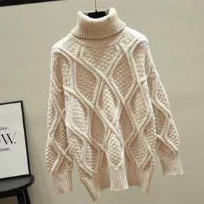 韩版麻花高领套头毛衣女宽松加厚外穿2021秋冬新款...