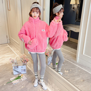 女童羊羔绒外套2021冬季新款加绒立领贴标中大童韩...