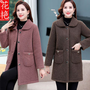 新款中老年女装加绒加厚仿羊羔毛大衣妈妈装冬装颗粒绒...