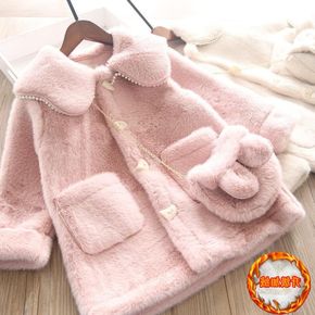 女童皮毛一体外套2021秋冬装新款儿童洋气毛毛衣中...