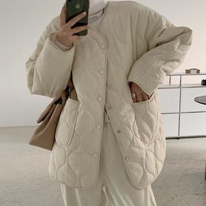 菱格棉服外套女复古2021新款韩版宽松中长款棉衣冬...