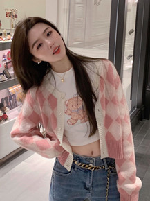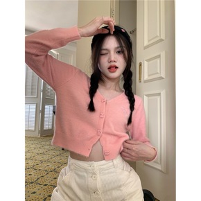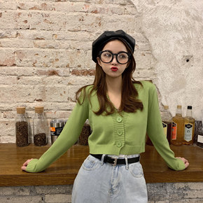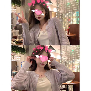 圆领短款针织开衫女长袖外搭2022年春秋装新款针织...