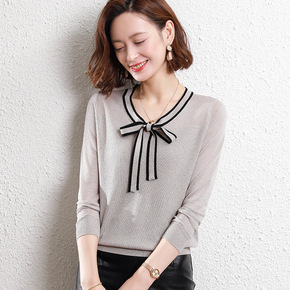 春夏新款设计感冰丝上衣女韩版修身薄款打底针织衫...