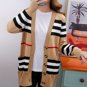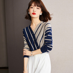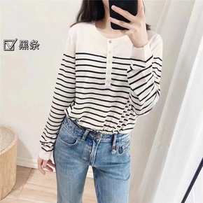 2022春款新款条纹针织衫女款宽松休闲韩版学院风时...